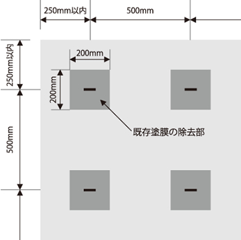 | 既存塗材の局部除去による湿分の放出と改修層との接着力向上 | |